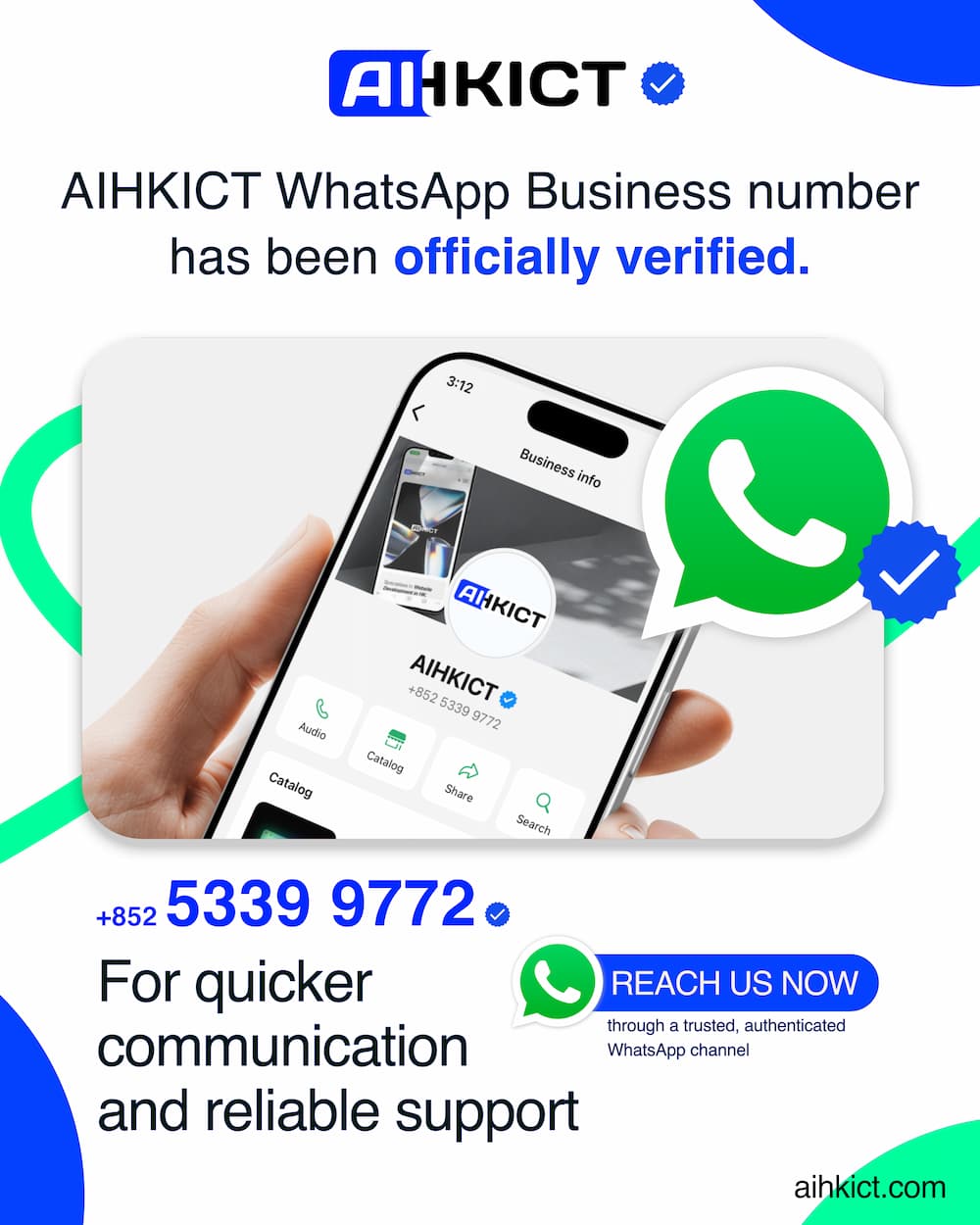 We are pleased to announce that our WhatsApp Business number has been officially verified.